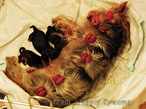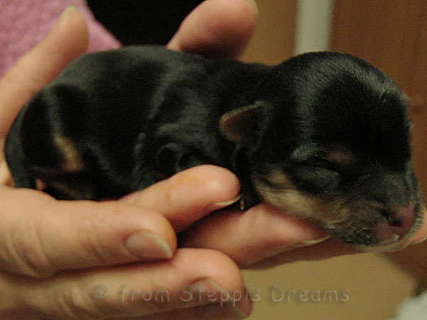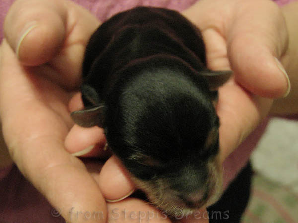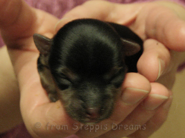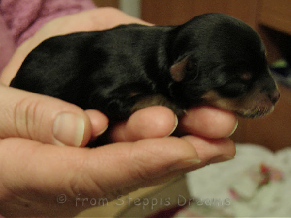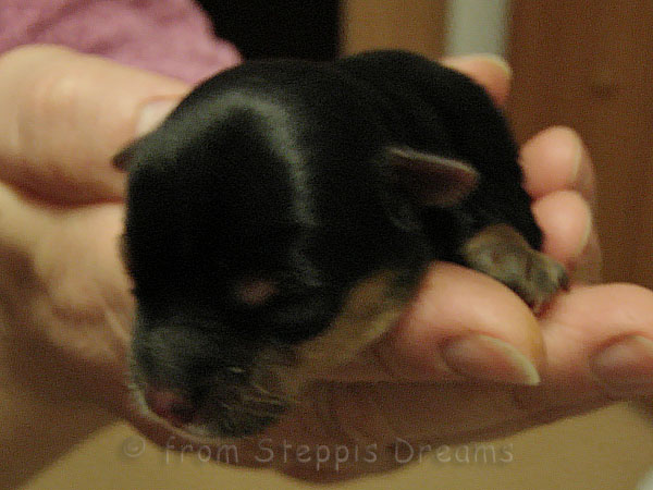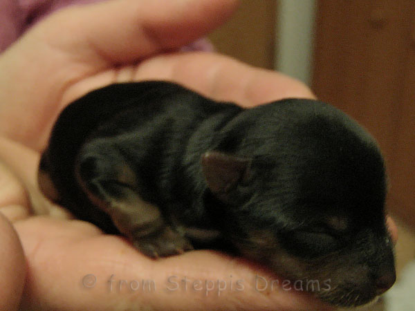 ... fiel am 18.03.2011. Die Geburt begann um 0.55Uhr mit der 1. Hündin, die 131g wog. Die 2. Hündin mit einem Gewicht von 125g kam um 1.19Uhr auf diese Welt. Um 2.27Uhr folgte ihr der Rüde mit stattlichen 165 Gramm