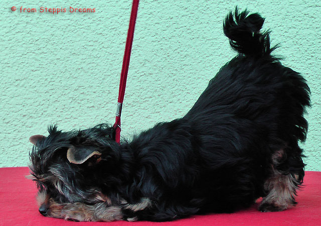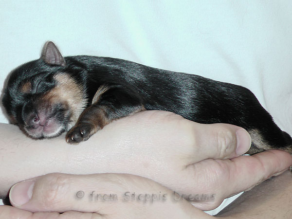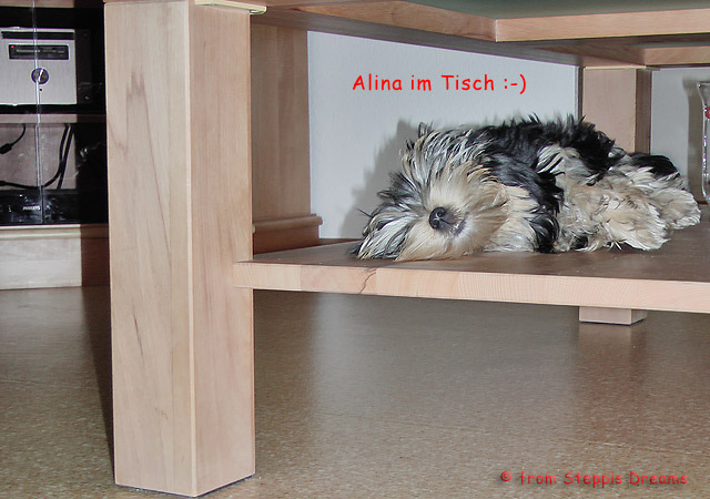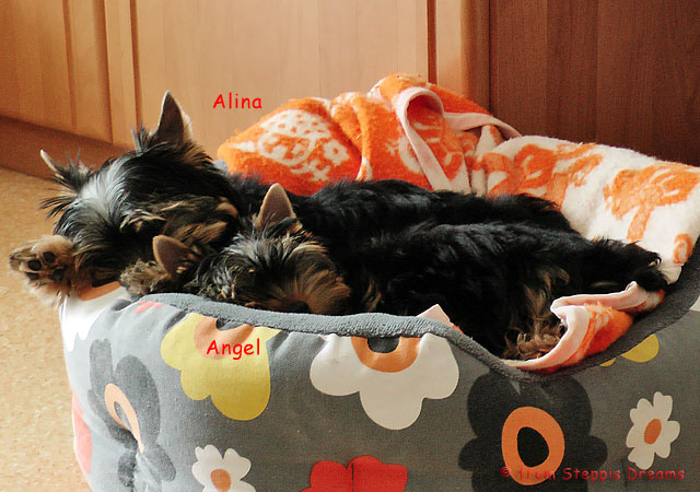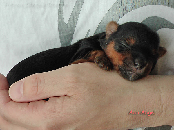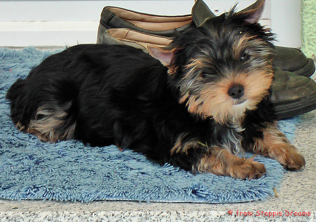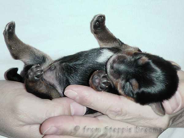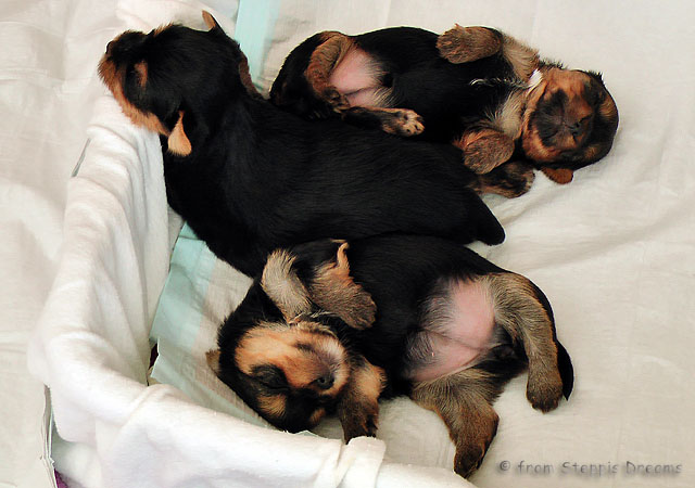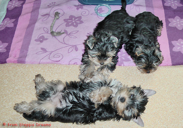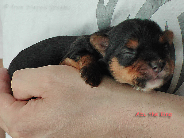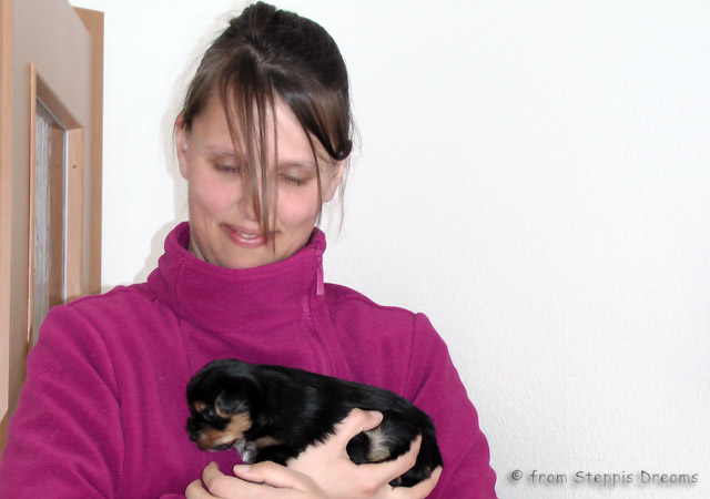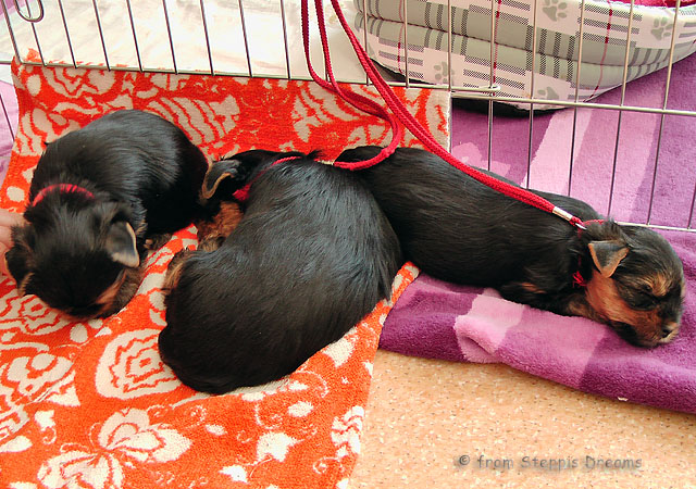 Das Bildermachen fällt mir immer schwerer, da die Welpen wenn sie wach sind, immer in Bewegung sind. Aber was soll man machen? Abu kann nun 15cm hohe Treppenstufen erklimmen, auch wenn er das eigentlich nicht soll