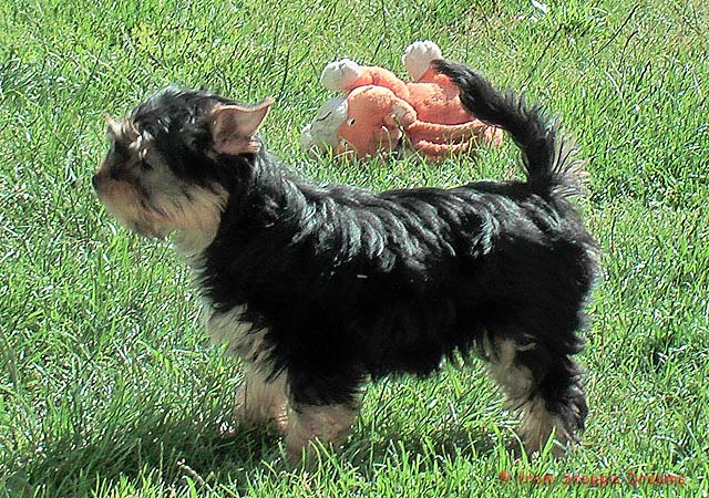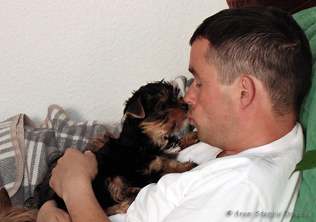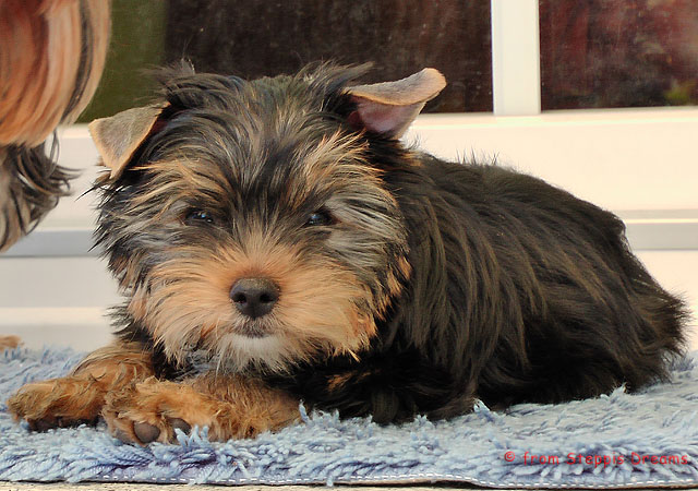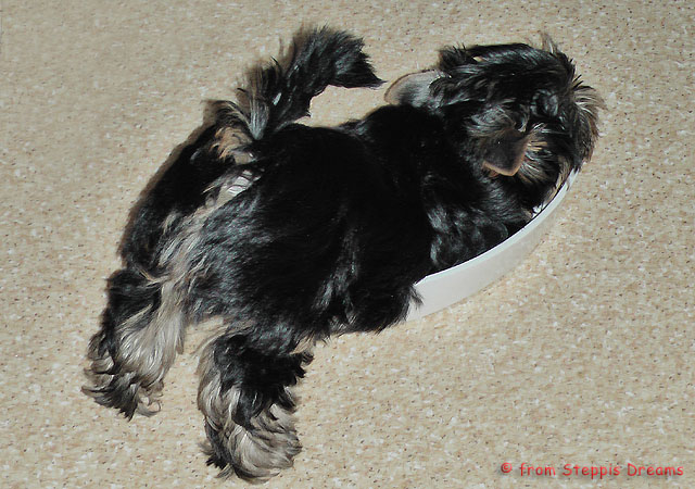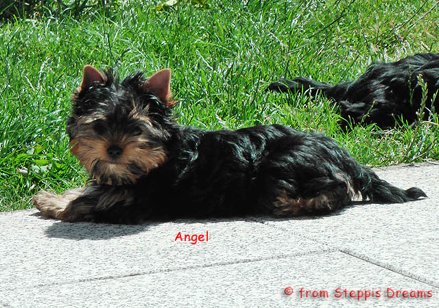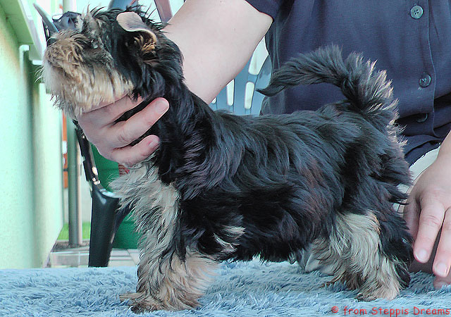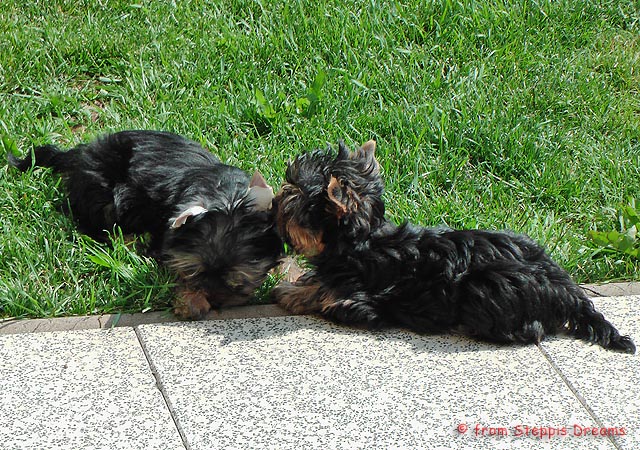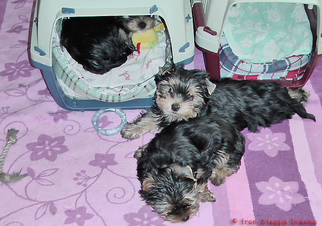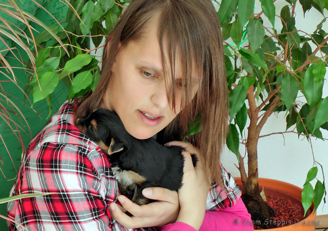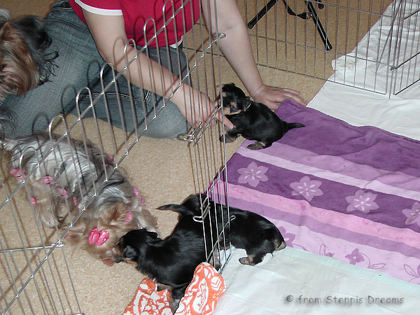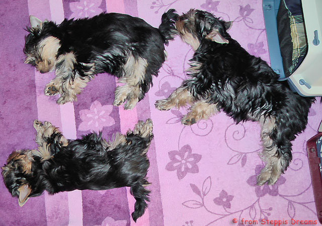 Das Bildermachen fällt mir immer schwerer, da die Welpen wenn sie wach sind, immer in Bewegung sind. Aber was soll man machen? Abu kann nun 15cm hohe Treppenstufen erklimmen, auch wenn er das eigentlich nicht soll