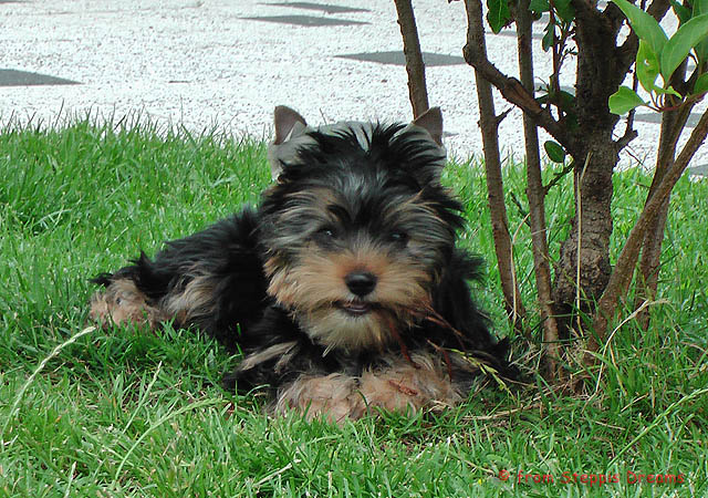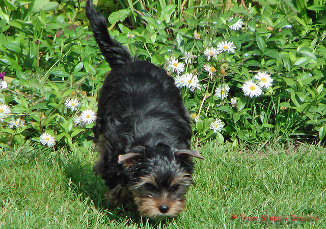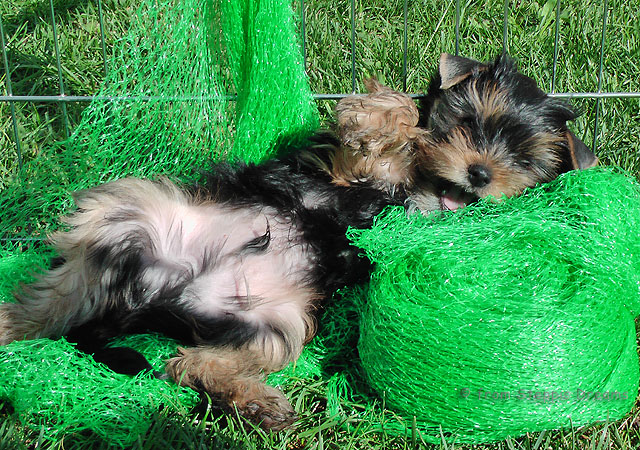 Seit dieser Woche sind die Welpen schon sehr viel draußen und finden Gras, Büsche und Bäumchen sehr interessant und haben diese zum Fressen gern. An Gewicht nehmen sie nun nicht mehr so doll zu.