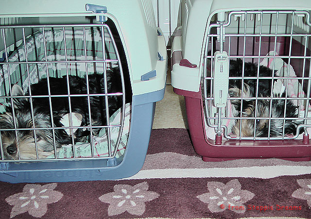 . Die kleine Ann Angel hat das erste Ohr aufgestellt. Wir haben zum Leinentraining das Kommando "Sitz" hinzu genommen und mit dem Boxentraining begonnen. Die Transportboxen bedeuten für die Welpen "liegen, schlafen und sich wohlfühlen". Abu lernt von allen am schnellsten