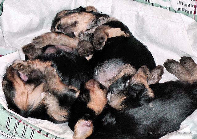 22.04.2011: Die Welpen sind fünf Wochen alt.