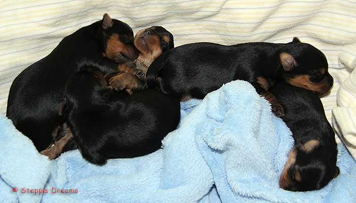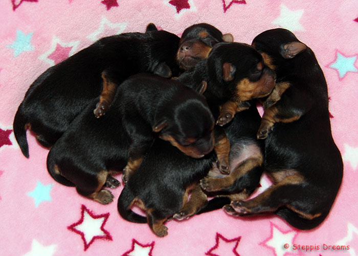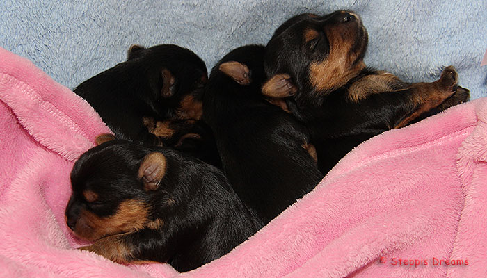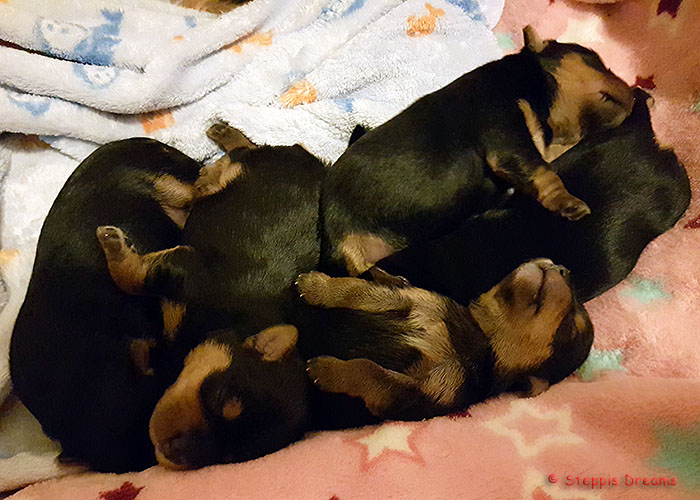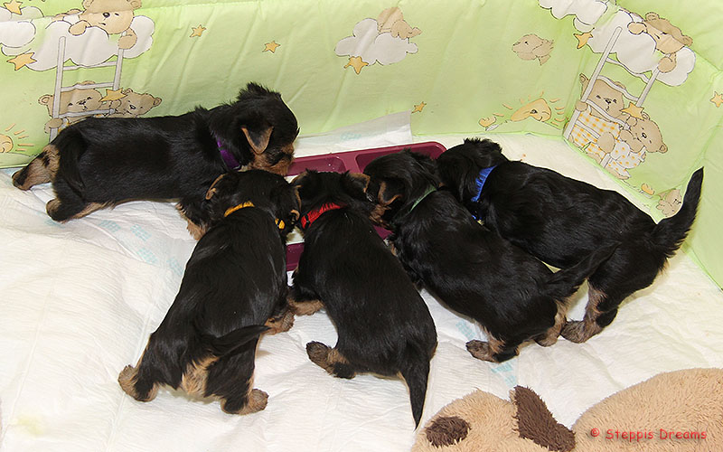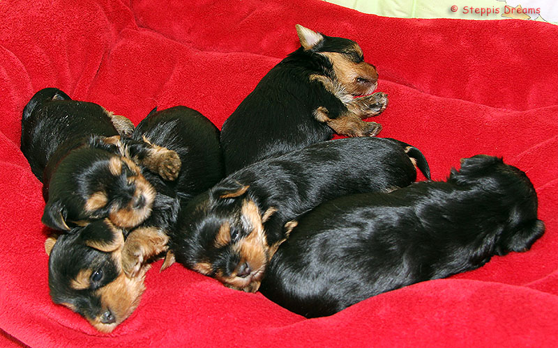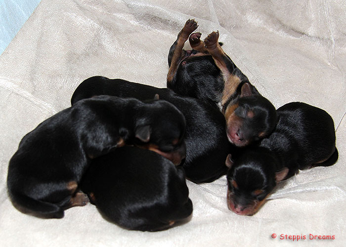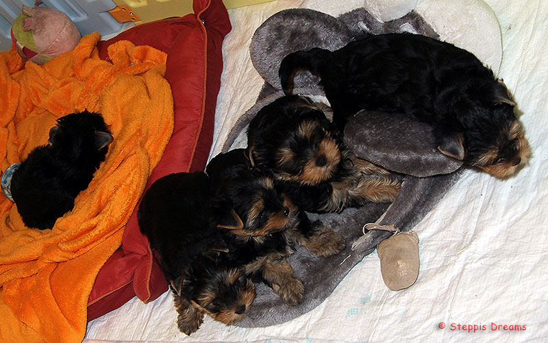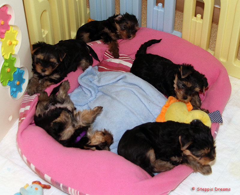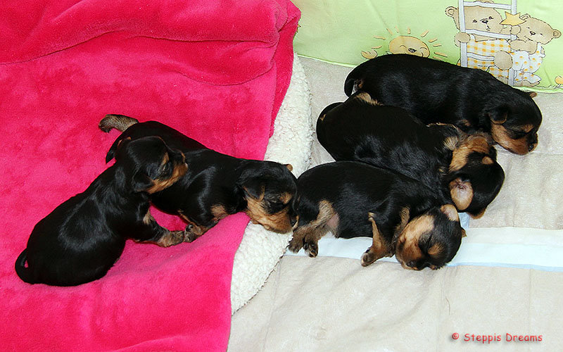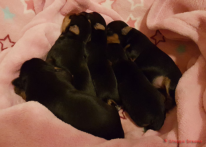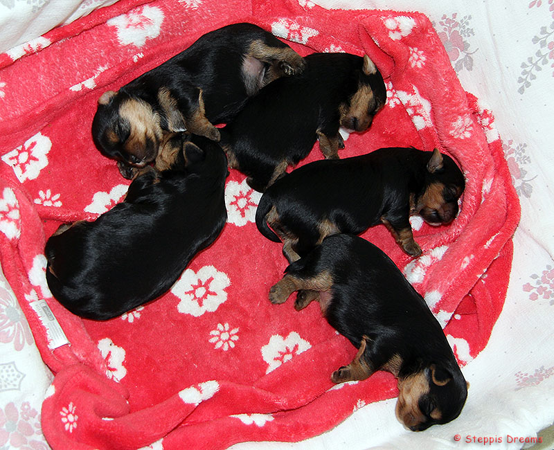 Alle Welpen entwickeln sich normal dem Alter entsprechend. Auch Nr.5 ist über dem Berg.