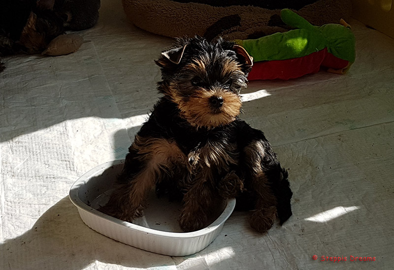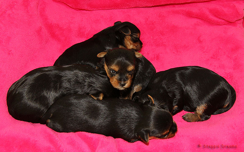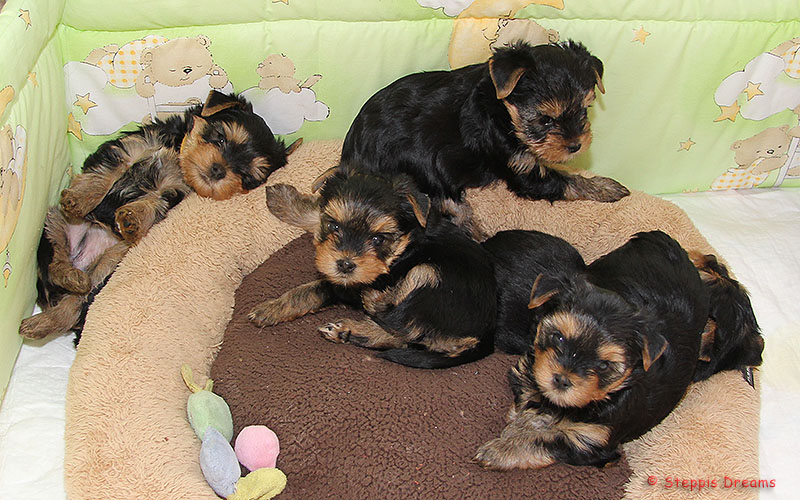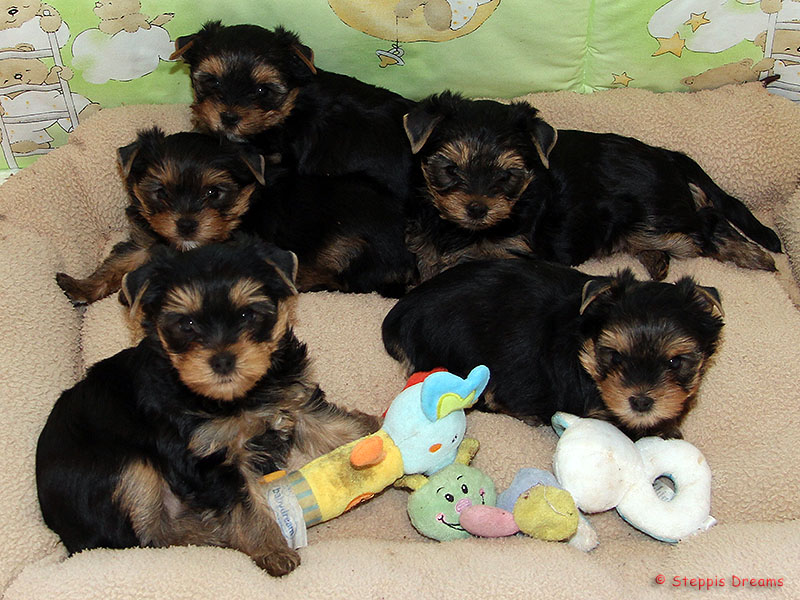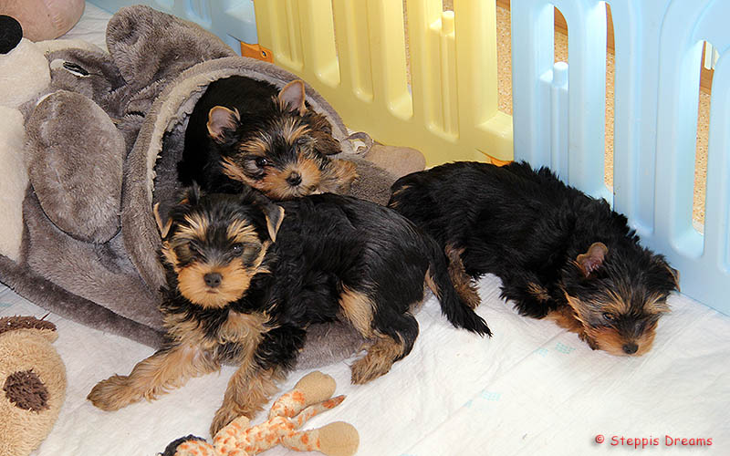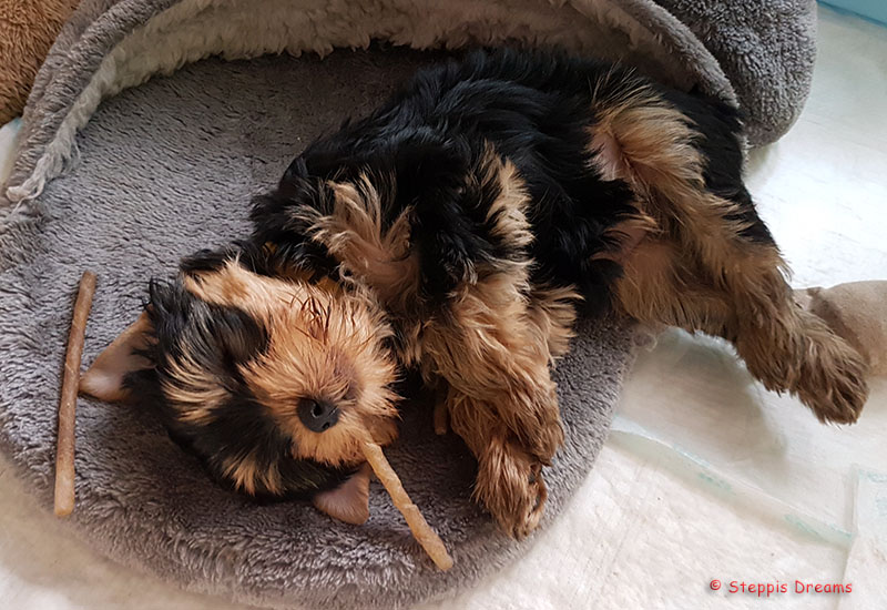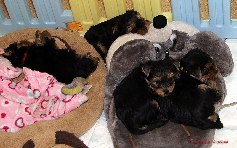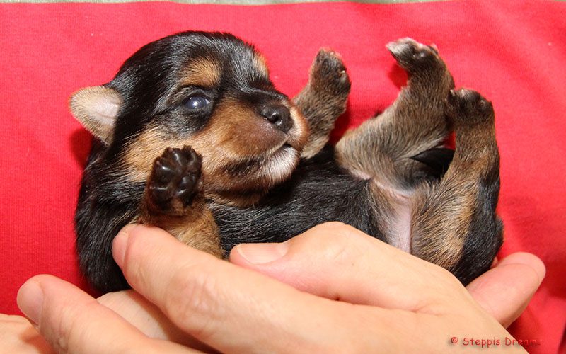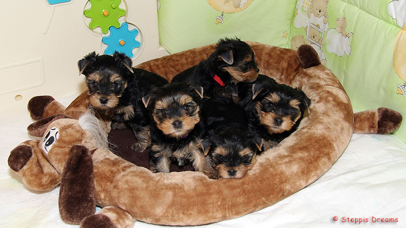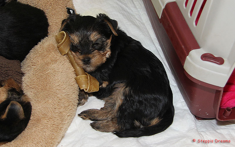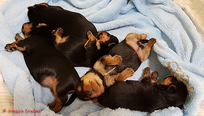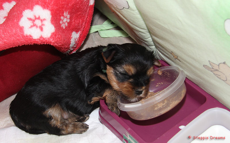 Alle Welpen entwickeln sich normal dem Alter entsprechend. Auch Nr.5 ist über dem Berg.