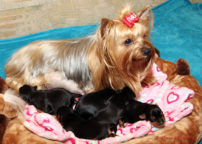 Unser Linchen hat 5 gesunde Mädchen zur Welt gebracht. Die Geburt begann um 2.23 Uhr mit der 147g schweren 1. Hündin. Um 4.02 Uhr kam die 2. zur Welt und wog 158g. Weiter ging es um 5.45 Uhr mit der 3. Hündin, die 161g wog. Um 7.01 Uhr kam die 180g schwere 4. Hündin zur Welt und um 7.46 Uhr wurde die 5. Hündin geboren. Sie wog 145g. Die Ahnentafeln beider Elternteile finden Sie hier: F-Wurf-Verpaarung.