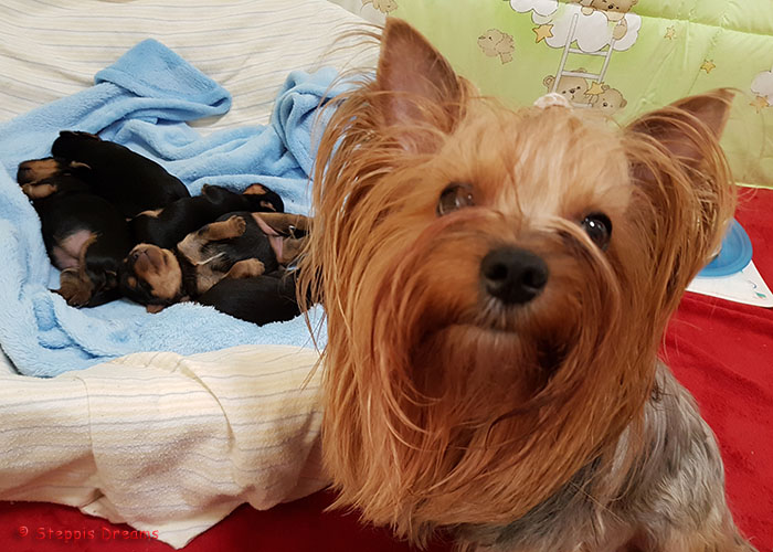 2.04.2017: alle Welpen freiwillig in der Box :-)