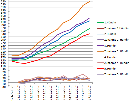 17.02.2017: Gewichtsentwicklung vom 6.02.17 bis 17.02.17
