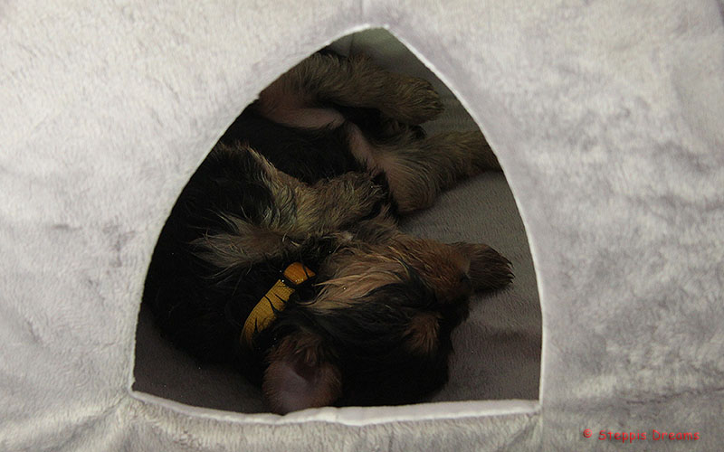 6.04.2017: Funny schläft mit der Kaustange :-).