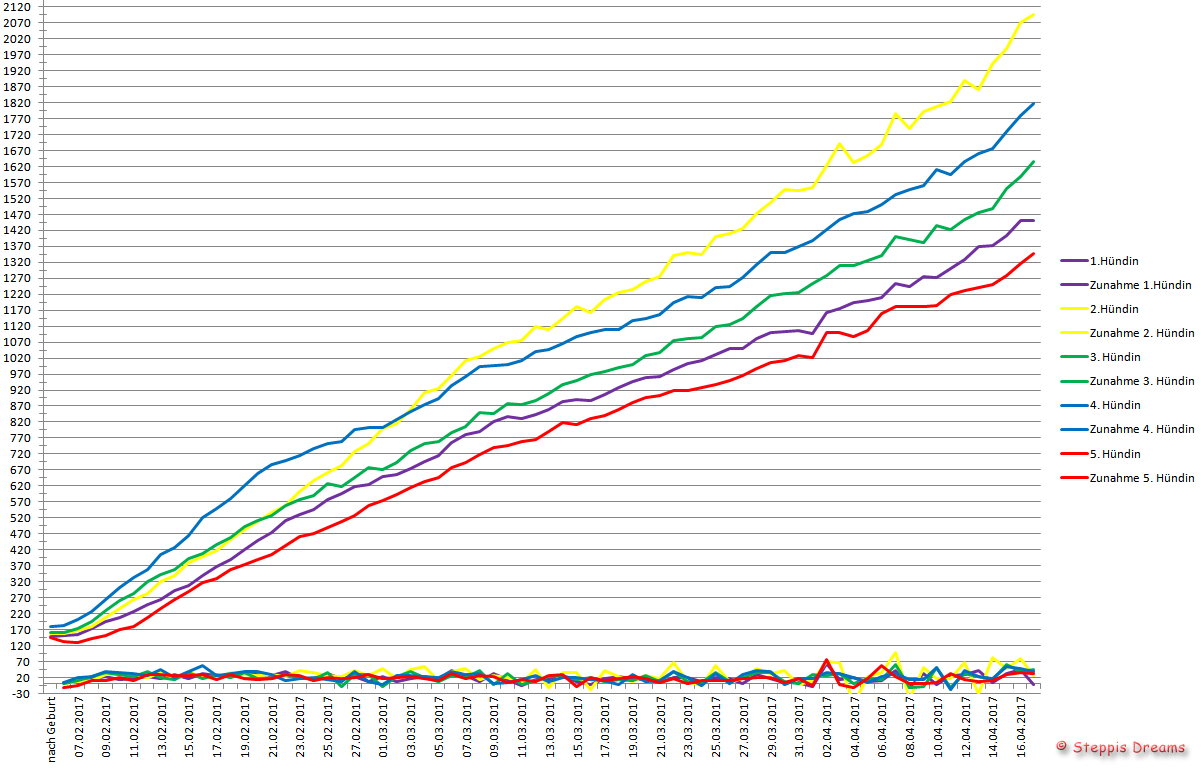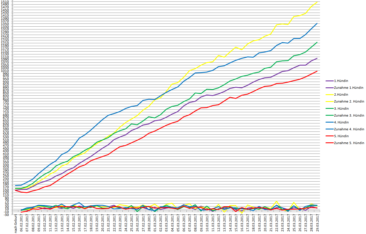 16.04.2017: F-Wurf-Gewichtsentwicklung bis zum Ende der 10. Woche
